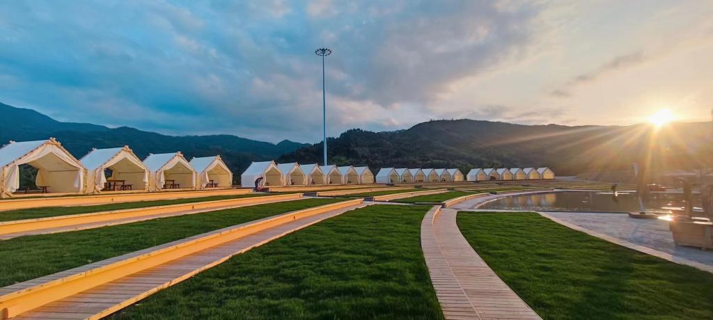 由永泰县嵩口镇玉湖村党支部书记、2011级机械制造与自动化专业校友金华厦负责招商引资的玉湖越野露营基地项目,目前已营业。该项目占地面积约100亩,包括游客中心、餐饮区、露营区、停车场等公共空间。