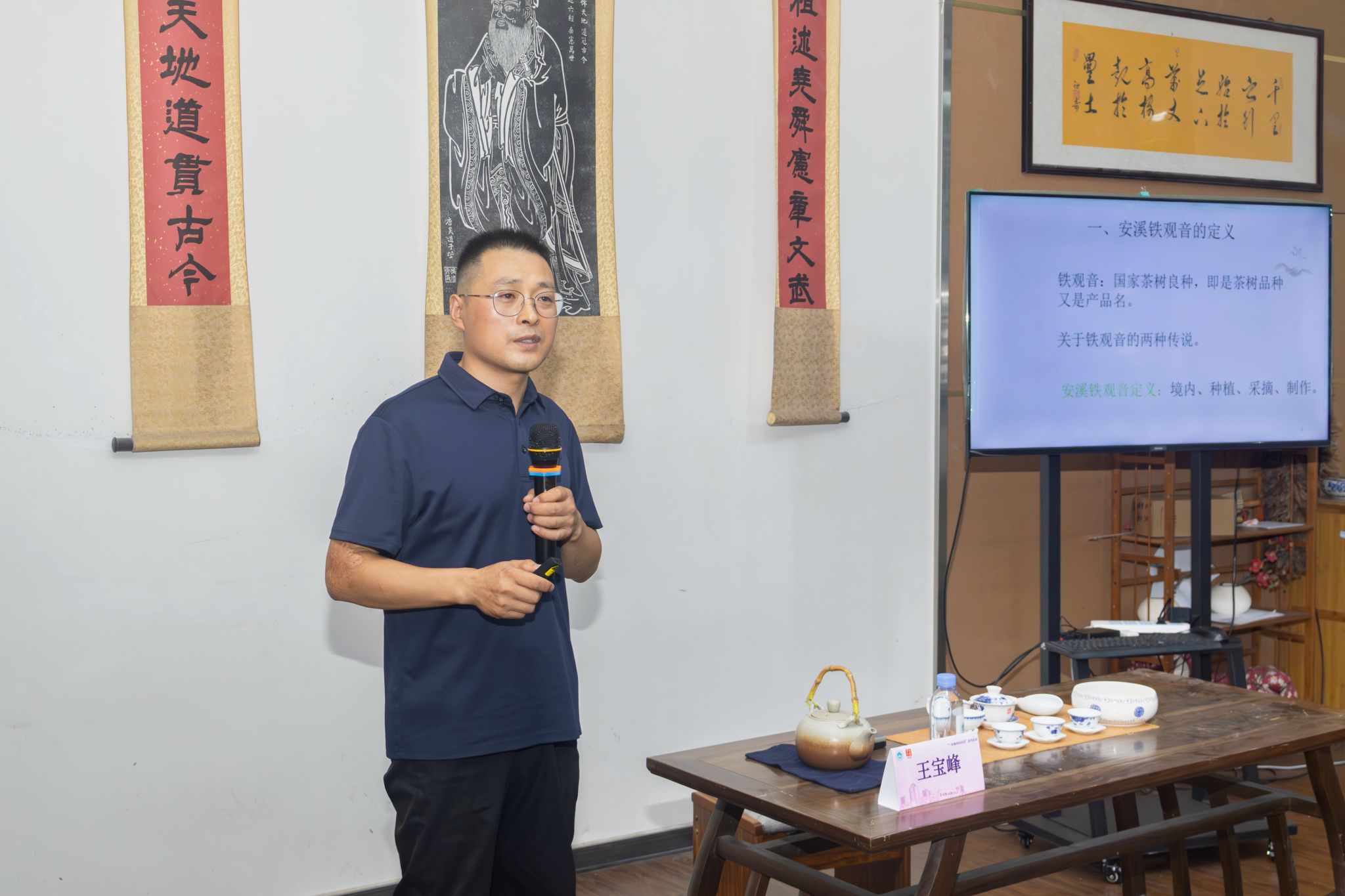 除了个人经历,王宝峰还分享安溪铁观音的相关专业知识,包括其定义、从茶叶采摘到成品茶的完整制作技艺,以及茶叶的品质特征等内容,让同学们对制茶过程有更深入的认知。